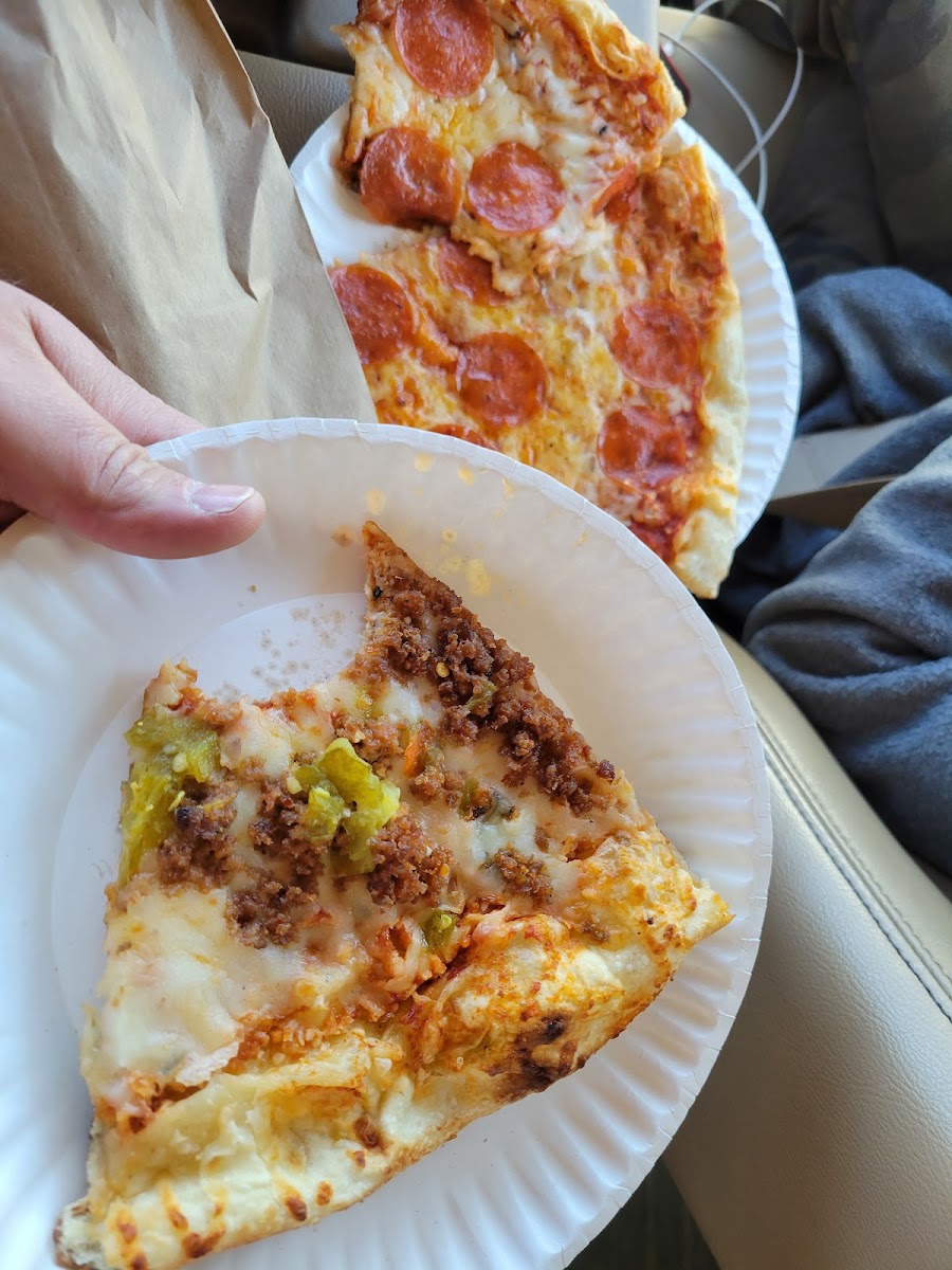 Hands down, the best pizza I have had. I would not have believed it until I tried it and was astounded by the amazing flavor of the sauce. Soft perfect crust with a great cheese pull. Man, I was in heaven until I finished my slice and reality hit, and I was back in the truck driving back home missing that slice already.